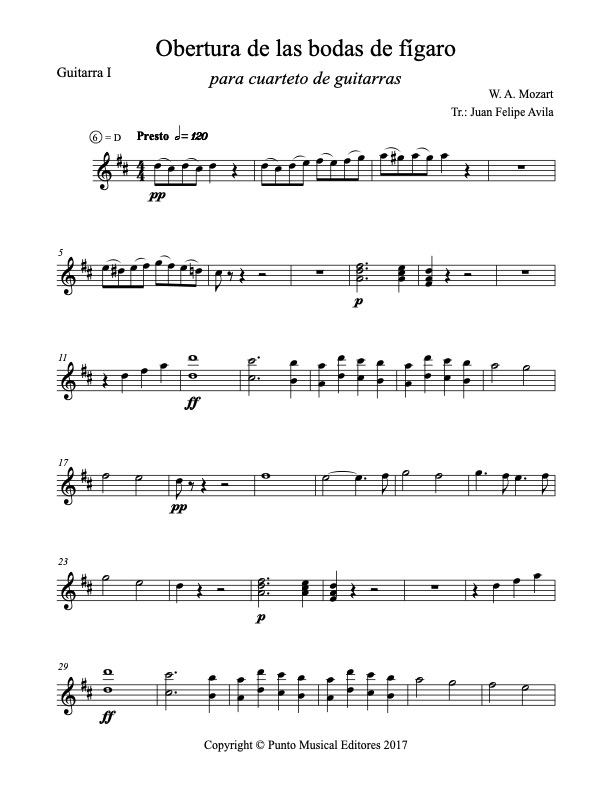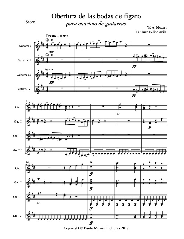 Transcripción para cuarteto de guitarras Juan Felipe AvilaContiene: Score y PartesFormato físico: ISMN: 979-0-801625-98-4Precio de venta: 50.400 COPFormato digital: ISMN 979-0-801625-99-1Precio de venta: 40.000 COP Share this: Share on X (Opens in new window) X Share on Facebook (Opens in new window) Facebook Like Loading...